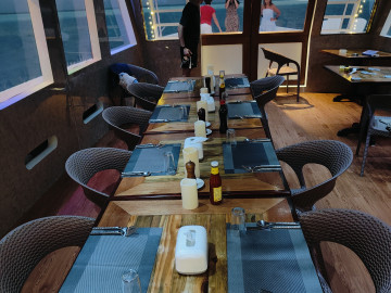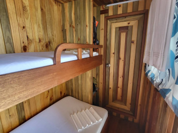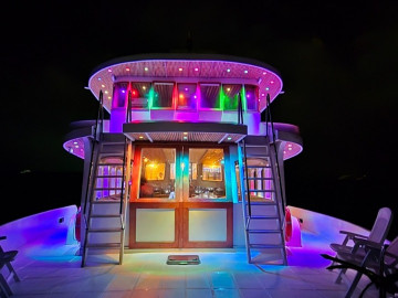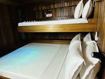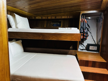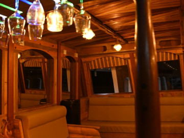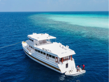 The Flying Fish provides a comfortable and well-equipped platform for exciting surfing holidays, snorkeling adventures, and scenic excursions in the Maldives.Boat Built & Renovated: December 2023 LOA: 31 meters Breadth: 11 meters Capacity: 22 passengers Engine: Yanmar 280HP Rooms: 8 air-conditioned rooms (each with attached toilet and hot shower) – 6 triple rooms and 2 double rooms Toilets: 9 Water: Desalination plant for fresh water Kitchen: Fully equipped onboard Bar: Guest bar (with alcohol) Restaurant: Indoor & outdoor restaurants, tea & coffee available round the clock Sun Decks: Two sun decks for relaxation and sightseeing Entertainment: LCD TV and Bluetooth speakers Diving & Snorkeling: Fully equipped diving school for excursions Speed: 10-12 knots